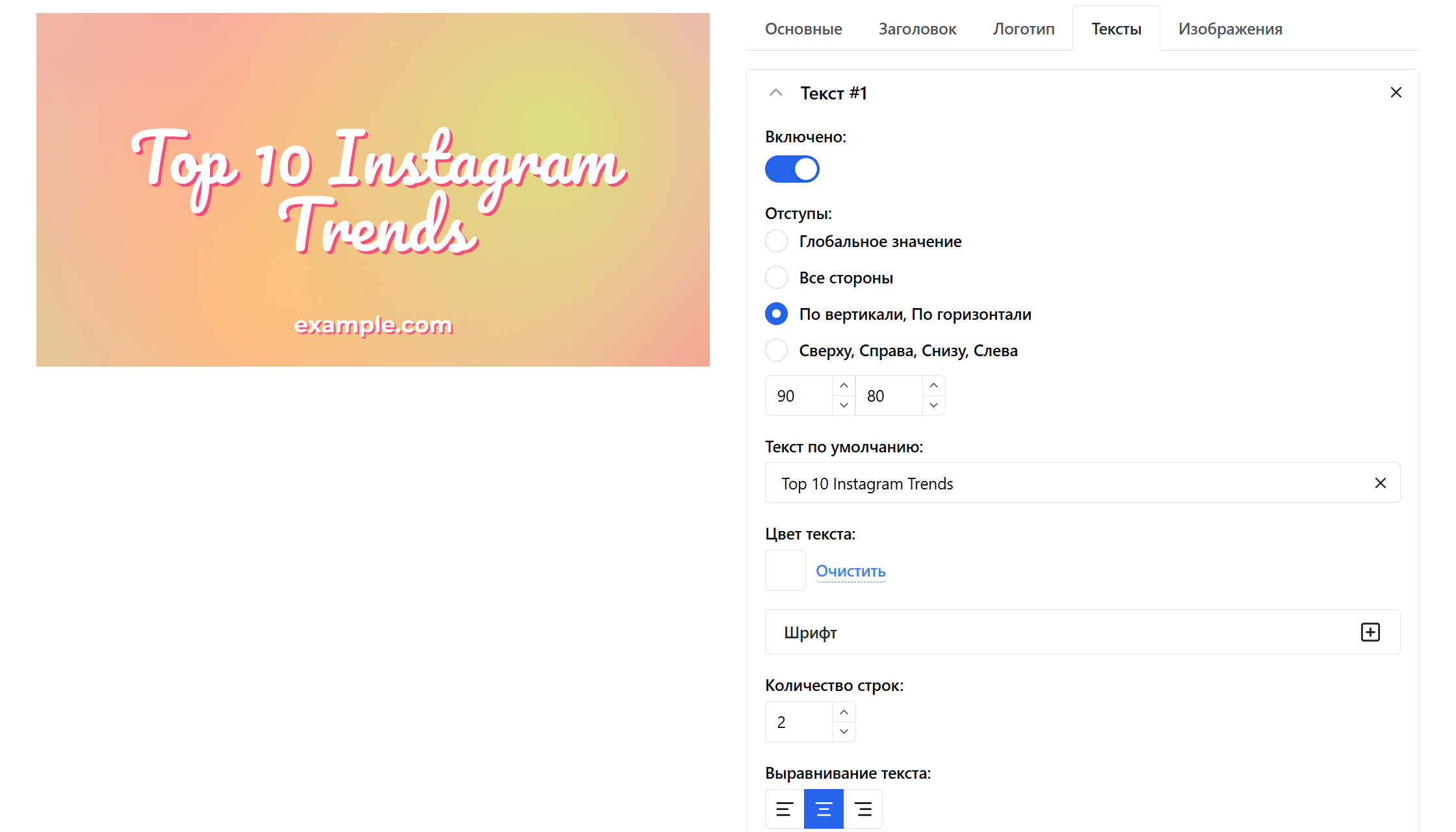 - Таким же образом можно добавить Text #2 и Text #3 — например, для домена сайта или короткой подписи.