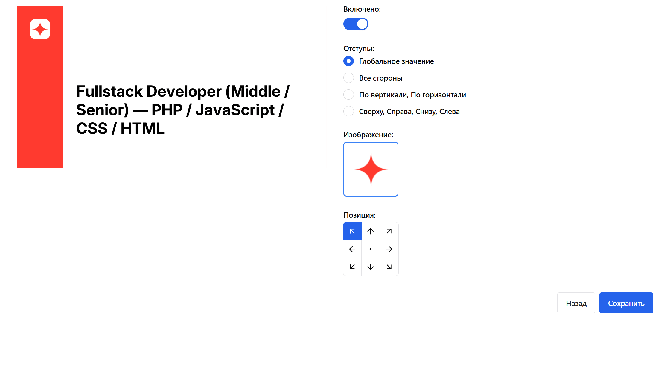 Этап 2. Заголовок вакансии