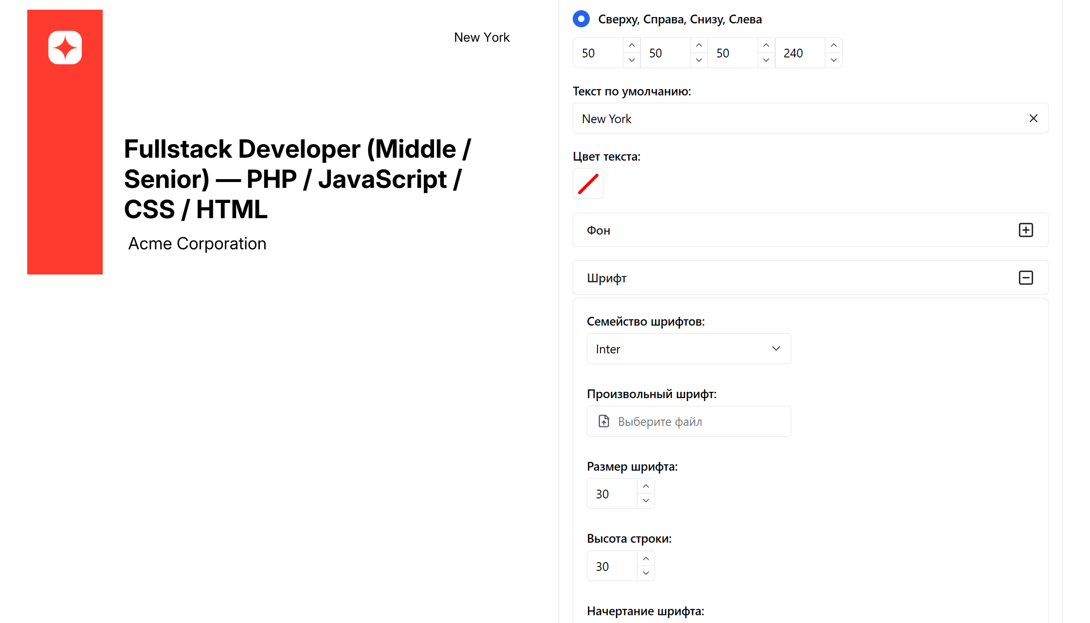Теперь добавим название компании, разместив его под заголовком вакансии.