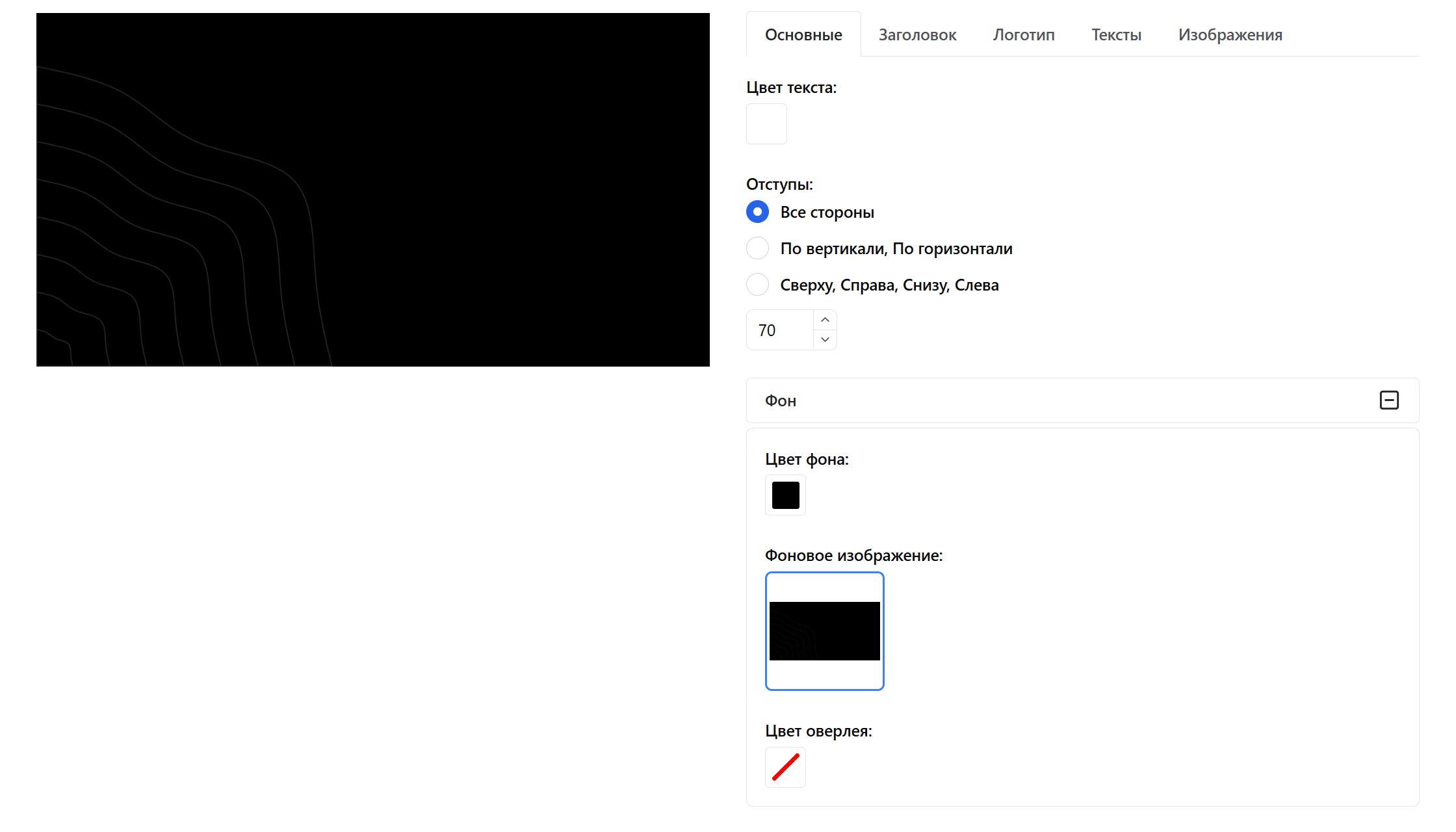Отступы: по всем сторонам 70 px, справа — 590 px.