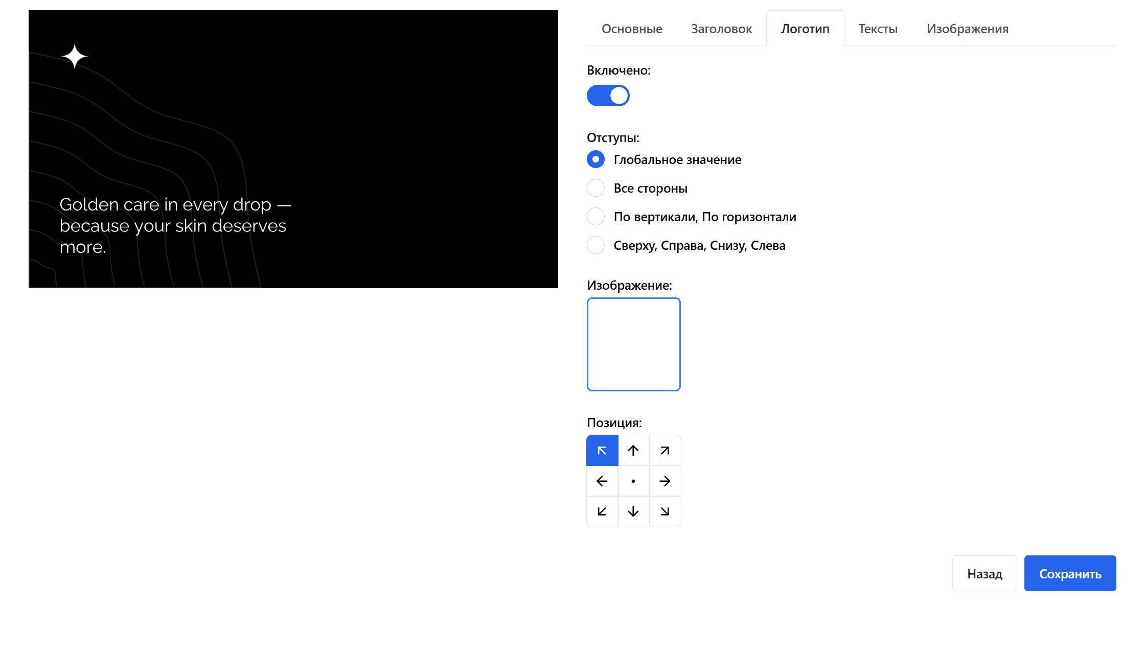 Загружаем логотип бренда, чтобы сохранить фирменный стиль.